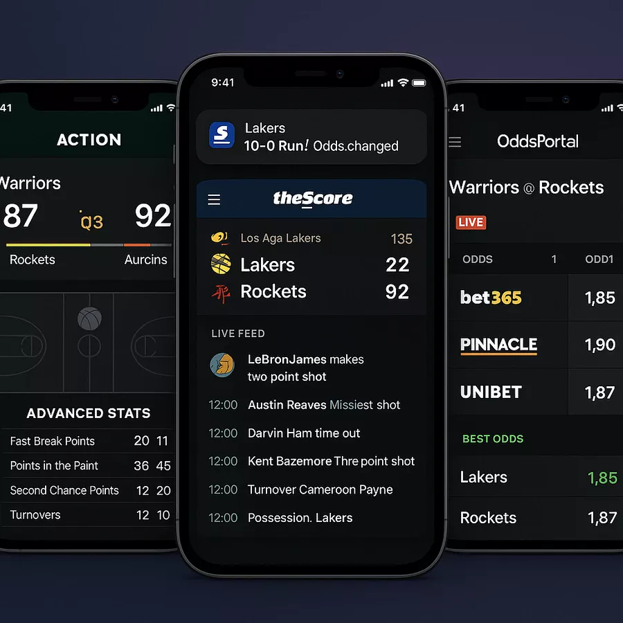 Action Network ist mein Haupt-Tool für Live-Tracking. Zeigt dir real-time scores, advanced stats, Line Movements. Die App ist gratis, Premium kostet 10 Euro im Monat. Ich hab Premium weil du dann Custom Alerts setzen kannst. Ich hab Alerts für: Quoten-Swings über 0.20, Scoring Droughts über drei Minuten, Foul-Trouble für Star-Players. Das gibt mir Edge weil ich Opportunities sehe bevor andere sie sehen.
